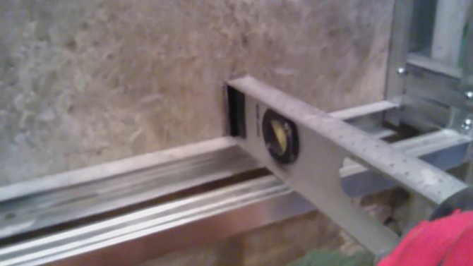 - По линиите се пробиват дупки за дюбели. Водачите са закрепени с самонарезни винтове и напречни греди към тях след 15-20 cm. За фиксиране се използват специални крепежни елементи - раци.