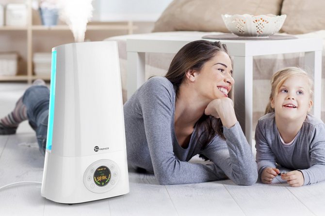 Инсталирането на домакински овлажнител ще помогне бърз се справят с прекомерна сухота на въздуха. Съвременните устройства от типа на дюзата или мембраната са оборудвани със система за регулиране на интензивността на пръскане на влага и автоматично се изключват при повишаване на влажността в помещението. Ултразвуков овлажнител работи тихо и безопасно, така че е удобно да го използвате в бебешката стая.
