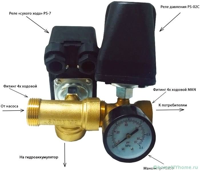 Качествената работа на водната станция се осигурява от правилно конфигуриран хидравличен акумулатор и превключвател за налягане