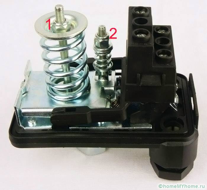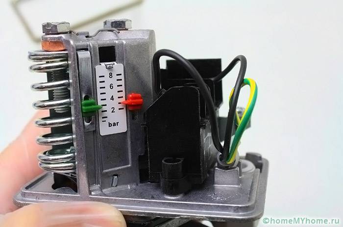 Когато манометърът достигне определено ниво, изтичането на вода спира. За да регулирате по-ниското налягане, голямата гайка се завърта по същия начин, докато контактът се задейства. Принципът на действие на устройството е прост, тъй като чрез задаване на малък обхват между горната и долната граница ще се извърши достатъчно изпомпване на вода от помпената станция, чрез създаване на постоянно средно ниво на индикатора. Системата работи равномерно, което ви позволява да получите оптималното налягане на водата за удобно използване.
