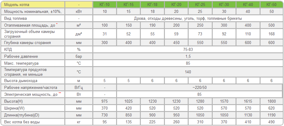 Вземаме Wwood равно на 1,8. След това полученото число 12 се умножава по 1,8, получаваме 21,6. Закръглете към по-голяма стойност, излизат 22 киловата.