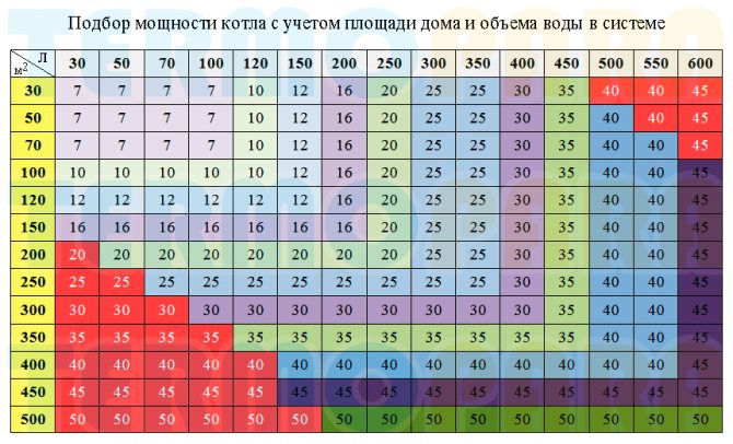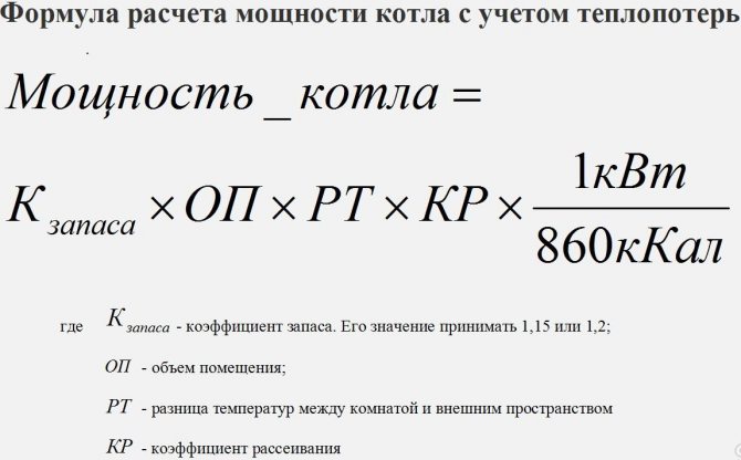 където Q е общата мощност на отоплителната система, kW; взето от изчислението на топлинните загуби на сградата