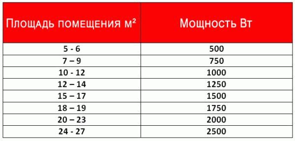 Изчисляване на мощността по площта на отопляваните помещения