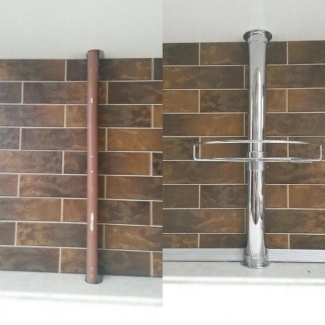 За това се използват декоративни розетки, а цветът, текстурата, материалът, вътрешният му диаметър се избират според диаметъра на тръбата и цвета на тавана и пода.