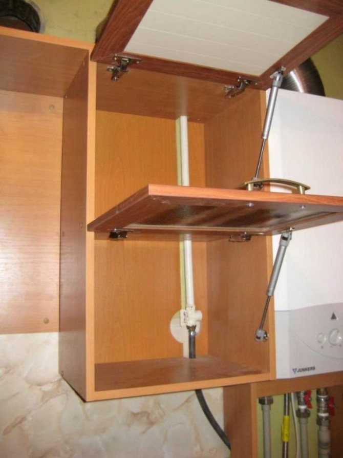 Ако тръбата върви хоризонтално, използвайте я, за да украсите допълнителен рафт с канап.