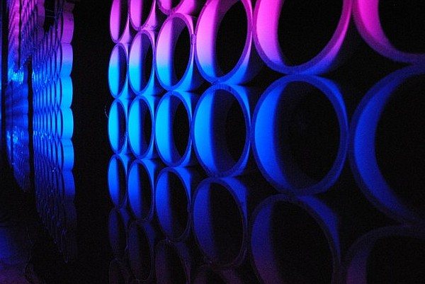 Нарежете PVC тръби на тесни пръстени, с помощта на такива пръстени можете да украсите стената или изцяло, или като направите някаква композиция, или като направите някои интериорни предмети, например венец, рамки за огледало или снимка и т.н. . Възможностите са почти безкрайни!