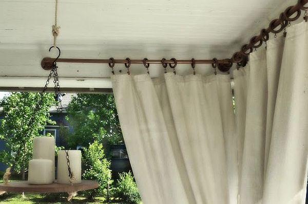 Ако тръбата е разположена по протежение на прозореца или над прозореца, достатъчно е да използвате корниз и завеса. Този метод ви позволява да разкриете творческите способности на майстора.