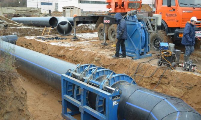За челно заваряване на полиетиленови тръби се изисква специално заваръчно оборудване. Този метод на свързване е ефективен само за спояване на HDPE тръби. Неговата гъвкавост се крие във факта, че ви позволява да запазите гъвкавостта на конструкцията по цялата й дължина. Този метод може да се използва както с изкоп, така и с отворен метод за полагане на тръби.