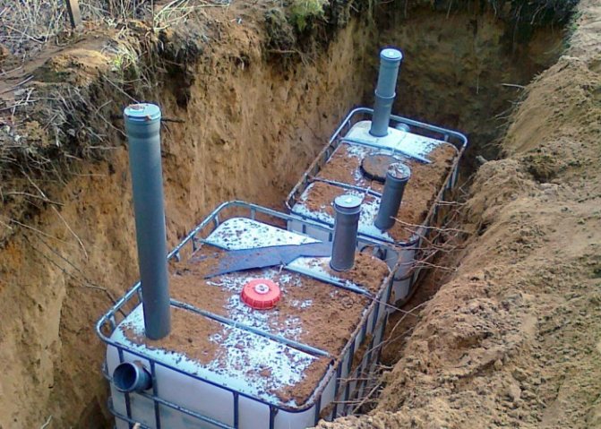 - Можете да добавите още няколко контейнера, ако това се планира в бъдеще, тогава се инсталира резервна тръба и входът е херметически затворен. В същото време се избира правилното място за инсталиране, така че да има място за допълнителни контейнери.
