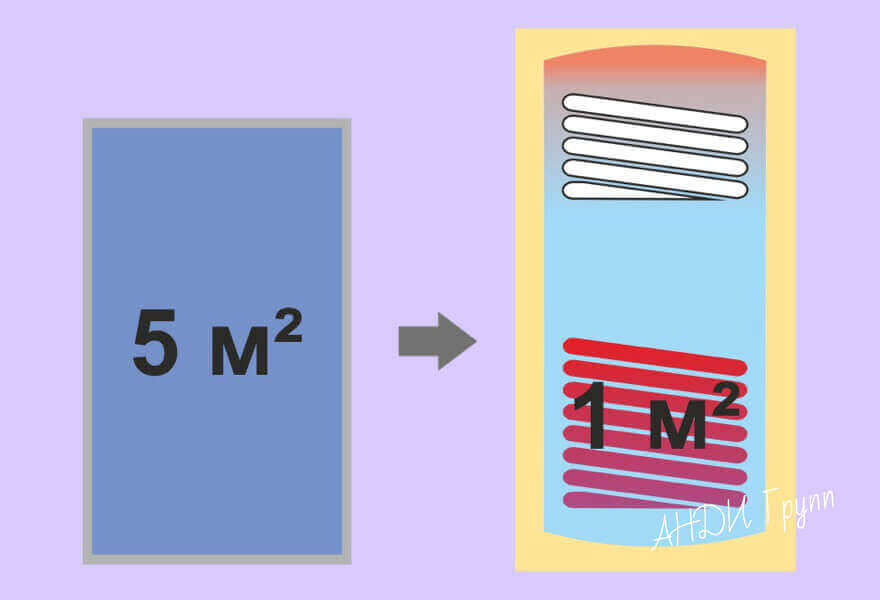 Инсталирайте буферния резервоар непосредствено до котела. Оборудването има солидни размери и в частна къща ще трябва да отделите специално помещение за него. Системата ще се изплати напълно в рамките на 2-5 години