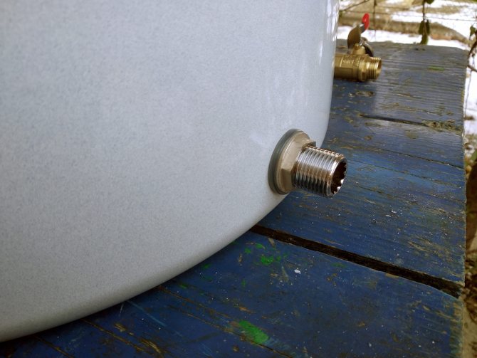 Горната част на цевта ще действа като батерия в такъв модел. Оттам трябва да премахнете разклонителната тръба за изхода на гореща вода и да направите същото отдолу за входа на студена вода. Оборудвайте всеки изход с клапан за контрол на потока на течността в зоната за съхранение.