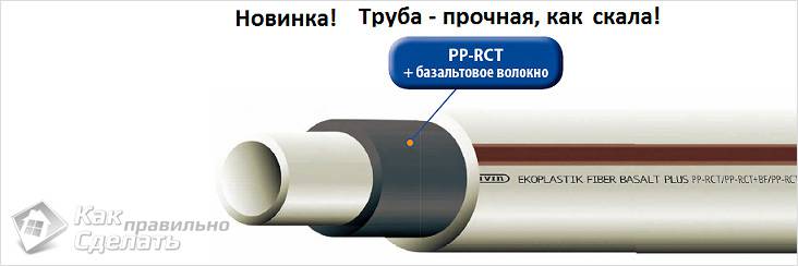 BANNINGER Faser. Те се използват по подобен начин за водоснабдяване и отопление. Структурата на пластмасата наподобява тази на кристал. Тръбите са подсилени с фибростъкло.За разлика от конвенционалните полипропиленови тръби, BANNINGER Faser се характеризира с висока якост, устойчивост на температурни промени и нисък коефициент на линейно разширение.