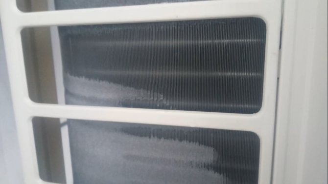 - кондензатът започва да замръзва на външния топлообменник, така че външното тяло започва да заледява;