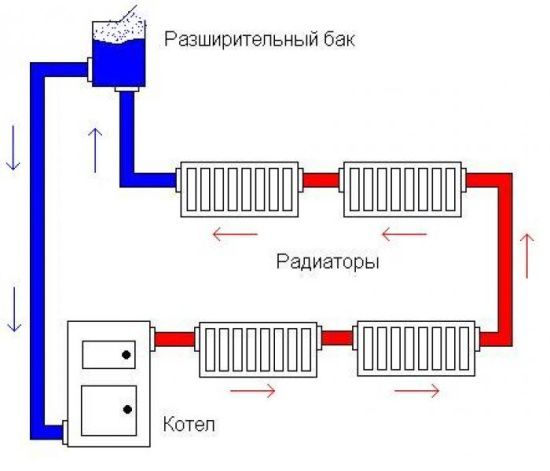 Ако се извършва пълненето на отоплителна система от отворен тип в частна къща, тогава процедурата за извършване на работата е малко по-различна. Особеността се крие във факта, че налягането в тръбите е равно на атмосферно. Следователно, основният контролен елемент е разширителният резервоар, който е монтиран над другите отоплителни устройства.