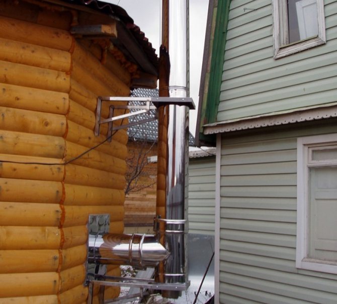 Една от опциите за местоположението на отделен комин за котела, фиксирайте тръбата на стената