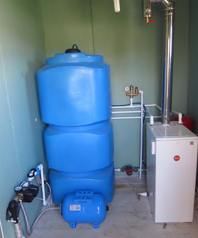 Резервоарът за съхранение на гориво също е инсталиран в котелното помещение. При обем над 0,8 м3 той трябва да бъде изваден, но трябва да се има предвид, че изборът на дизелови модели е значително стеснен: горивната помпа на котела трябва да има подходяща всмукателна мощност. Като контейнер се използват специални резервоари за съхранение на дизел, обикновено изработени от здрава пластмаса, устойчиви на агресивни течности и външни влияния.