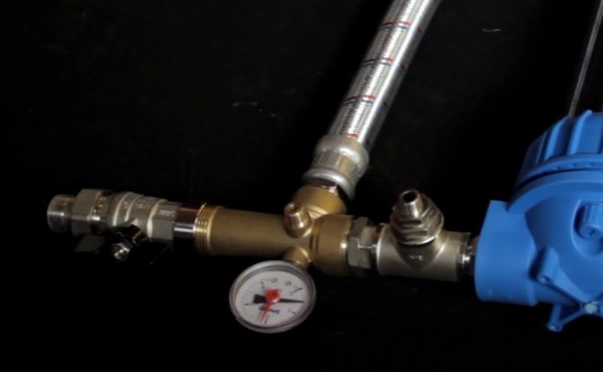 - На разклонителната тръба на резервоара е монтиран предпазен клапан, а отдолу - спирателен клапан. Това разположение ще позволи на водата да изтече, за да провери налягането във въздушната камера на устройството. Съединенията са запечатани с теглич или димна лента.