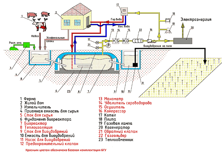- Разработеният газ се изхвърля през изходните вентилационни тръби и се използва по предназначение.