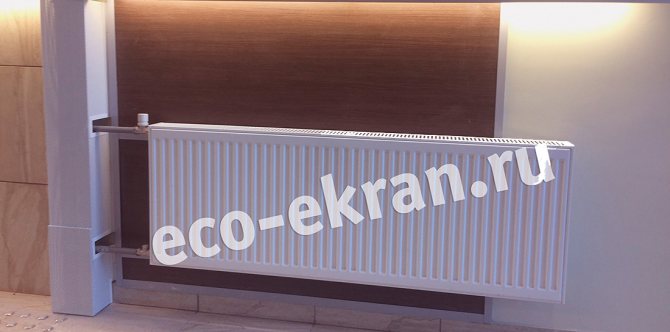 Инсталирането на тази опция ще изисква предварително полагане на захранващ кабел с изходи за свързване на радиатори. Предимството е липсата на отоплителен котел, недостатъкът е увеличената консумация на електричество. Както в предишния случай, инсталирането „направи си сам“ е последният и най-лесен етап, съдейки по рецензиите. Снимката показва електрически радиатор за основи.
