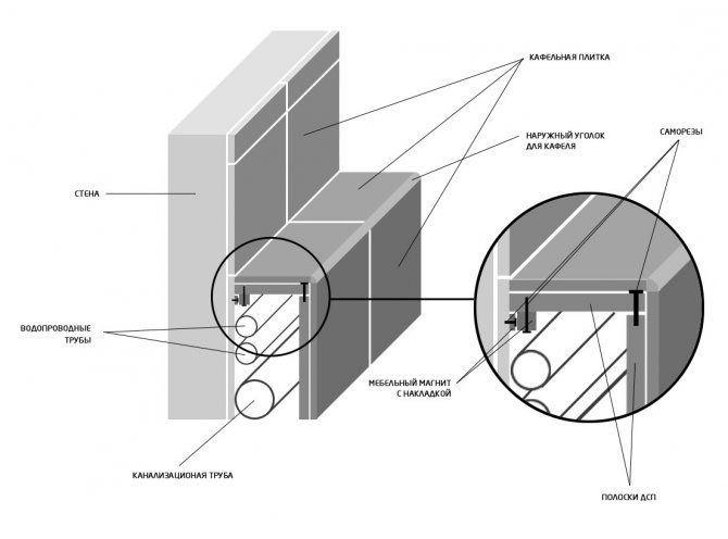 - Последната стъпка е инсталирането на декоративни панели, които ви позволяват красиво да маскирате мястото на байпаса на тръбата.