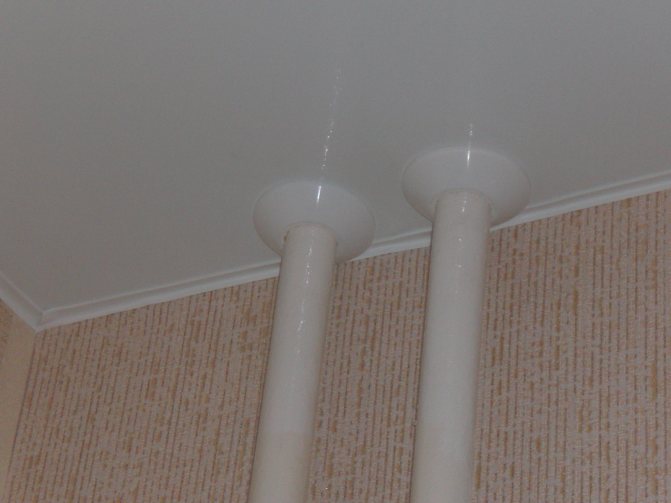 Опънат таван под тръбата