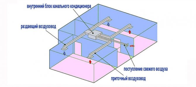 - Модели на канали. Те са интегрирани в системата на главния въздуховод - като правило те се поставят във вътрешна вдлъбнатина с изход на работната част към стаята.