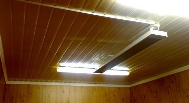 Инфрачервените нагреватели са монтирани на стени или тавани, така че няма загуба на полезно пространство, което може да се използва за нуждите на гаража и автомобила. В същото време повърхностите, които са директно изложени на радиация, се нагряват. В много случаи най-добрият вариант е да поставите инфрачервения нагревател на тавана на гаража над пода. Лъчите, излъчвани от устройството, ще затоплят пода. И той от своя страна ще отдаде топлината си на околното пространство, загрявайки въздуха.