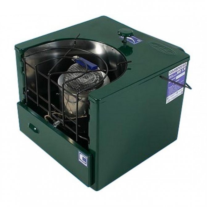 Тялото на печката съдържа резервоар за гориво с клапан, сменяем блок с филтър, горивни камери, регулиращ винт, рефлектор и фитил. Течното гориво тече от резервоара за гориво към горелката чрез гравитация, количеството му може да се регулира с винт.
