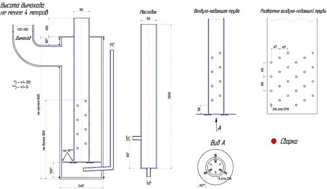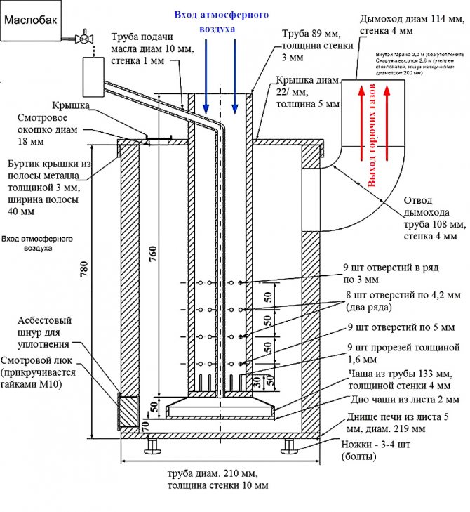 Алгоритъмът на действия при сглобяването на печка с дизелово гориво със собствените си ръце трябва да бъде както следва:
