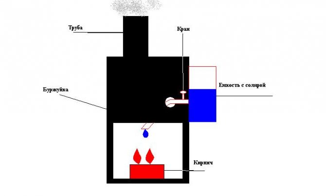 Дизеловото гориво се загрява във фитилната купа, след което се превръща в парообразно състояние. Освен това парите на дизеловото гориво влизат в горивната камера, където изгарят с образуването на голямо количество топлина.