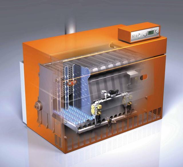 - Оборудване за дълго изгаряне, чието време на работа може да бъде до една седмица. Доставката на енергия (която може да бъде дърва за огрев, въглища, пелети, дървесни отпадъци) се извършва в полуавтоматичен режим и мощността на агрегата може да надвишава 400 kW. Предлагат се домакински модели с мощност до 100 kW.