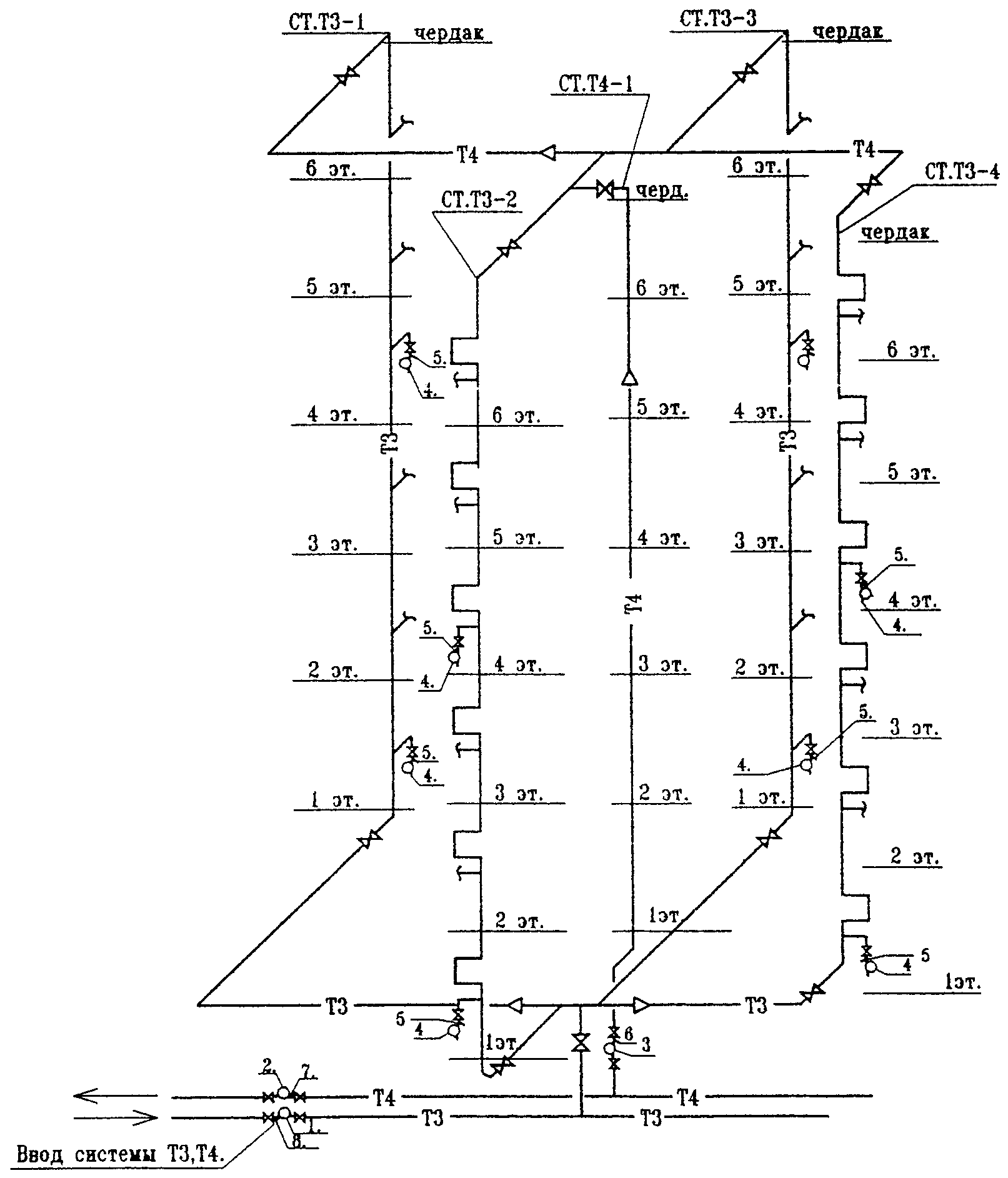 Най-добрият вариант е циркулацията. И най-простото нещо е да влезете в тръбата в мазето, а оттам през апартаментите през щранг, който минава през всички етажи. Всеки вход има свой собствен щранг. Достигайки горния етаж, щрангът прави обратен завой и вече покрай всички апартаменти се спуска в мазето, през което се извежда и свързва с връщащия тръбопровод.
