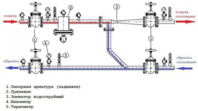 Как работи? Водата идва директно от ТЕЦ и се загрява до 130-150 градуса. Освен това налягането се увеличава до 6-10 атмосфери, така че образуването на пара е невъзможно - високото налягане ще прокара вода през всички етажи на къщата без загуби. В този случай температурата на течността във връщащата тръба може да достигне 60-70 градуса. Разбира се, по различно време на годината температурният режим може да се промени, тъй като е пряко обвързан с околната температура.