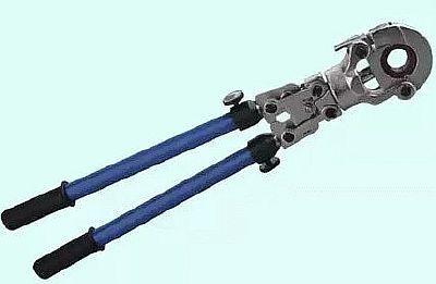 | Ръчно | Най-простият модел. Задвижван от механично напрежение. Оборудван с две дръжки, свързани към кримпващата глава с предавка. Когато те се компресират, действието се предава на главата и оказва натиск върху втулката. В такова устройство е възможно да се регулира дължината на дръжките. Такъв модел често е оборудван с универсална глава с набор от облицовки, с различни диаметри. | Компактен, лесен за работа.Те са леки (2,5 g). и ниска цена. | Възможността да се използват само за металопластични изделия с напречно сечение до 26 мм. Необходима е мускулна сила. |