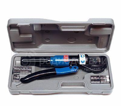| Хидравличен | Те имат хидравлична преса, свързана с главата. По време на работа буталото навлиза в цилиндъра, като по този начин създава сила, тя се предава на главата. Препоръчва се за металопластикови тръби 50 - 100 мм. | Няма нужда да се използва физическа сила, тя е заменена с хидравлична сила. Производителността на труда се увеличава. | Цената е висока и изисква постоянна поддръжка. |