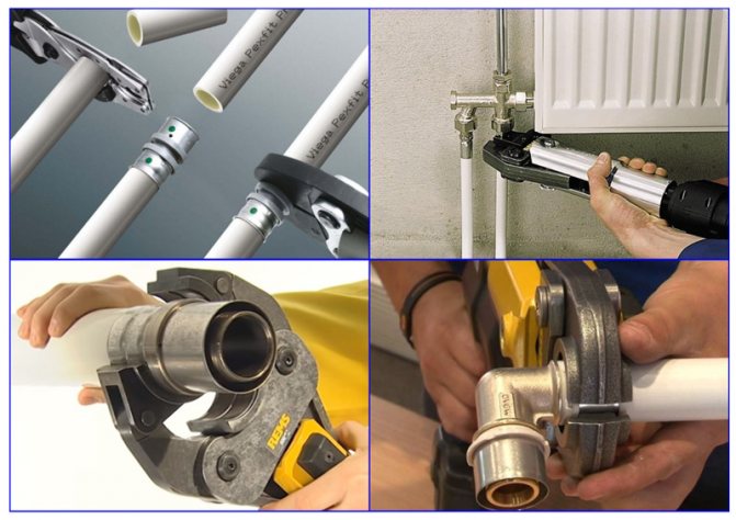 За първия тип се използват пресови фитинги. Постоянните връзки се извършват главно в затворени инженерни мрежи, монтирани под пода или в стената. Те не изискват периодична поддръжка. Те се извършват с помощта на специален инструмент, наречен щипки за преса.