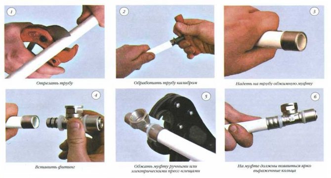 Монтажът на тръбопроводи от металопластика не може да се извърши чрез заваряване или залепване; за това се използва методът на механично кримпване. Има два вида връзки - едноделни и разглобяеми.