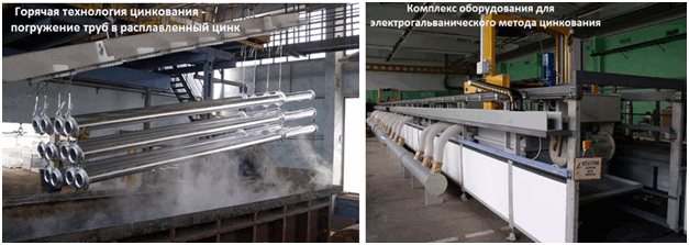 Инструкциите за производство на поцинковани тръби предвиждат два основни метода за нанасяне на защитен слой: