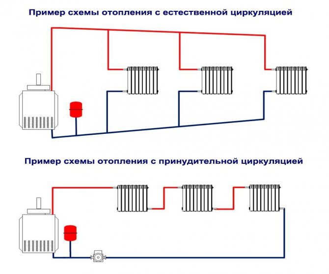 Разликата между схемата с принудителна циркулация е инсталирането в помпената система