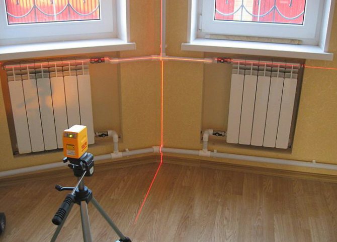 Ако това е система с естествена циркулация, трябва да създадете наклон с дължина 3-5 см на един метър, а за принудителна циркулация - 1 см / м.