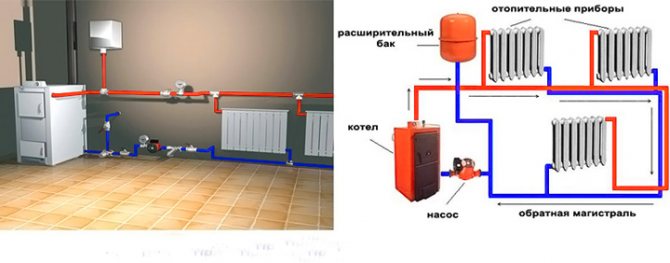 Освен това има отопление с естествена и принудителна циркулация. В първия случай водата тече по веригата с естествени сили, във втория, благодарение на работата на циркулационната помпа.