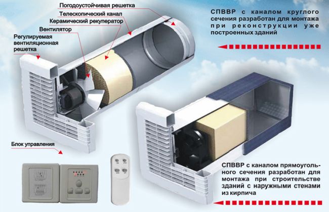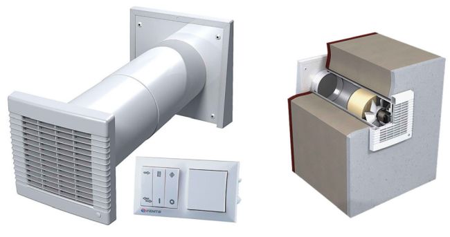 Тип захранване и изпускане. За правилна работа ще трябва да инсталирате две вентилационни тръби и устройството за захранване и изпускане изглежда така.