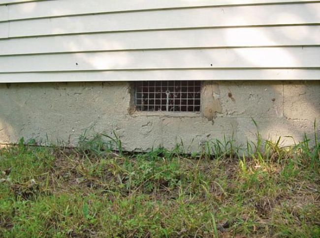 Отворите трябва да бъдат разположени от подветрената страна, която е най-малко склонна към валежи. Къщите със сложни основи и разположени в ниско разположени райони могат да имат до една дупка на всеки 3-4 метра. Затваряме вентилационните отвори с решетки отвън.