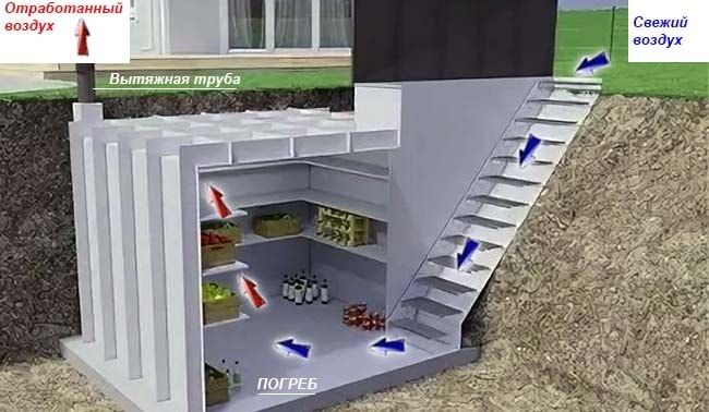 - Принудителният въздушен обмен е рационален с площ на избата над 50 кв. М.