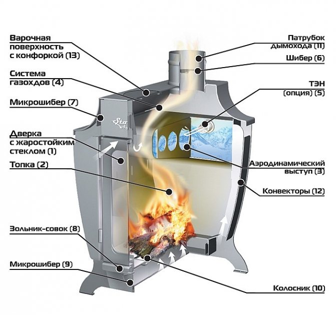 - ефективно разсейване на топлината; Ефективността на такива устройства е сравнима с ефективността на газовите отоплителни устройства и е значително по-висока от ефективността на печките на дърва;