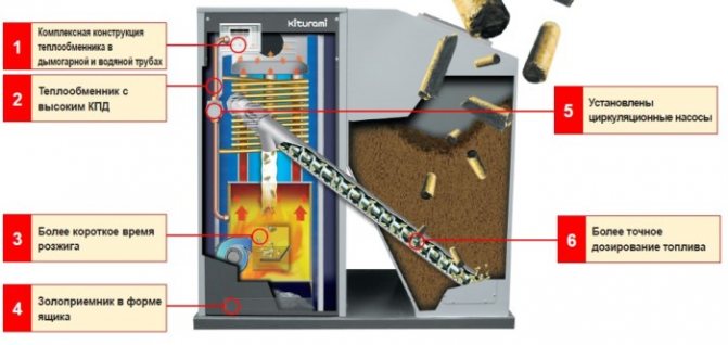- частично комбинирани; разрешено е използването на брикети и дърва за огрев - това е улеснено от формата на горивната камера; но основната роля на горивото се играе от пелети, докато други опции са полезни в ситуации, когато няма достъп до пелети; пренебрегването на това правило води до повреда на оборудването;