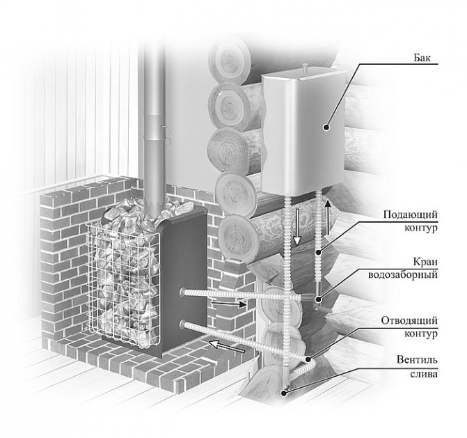 В присъствието на система за водно отопление, заедно с въздуха, течността също се загрява. Водата циркулира през тръби, ако е необходимо, влизайки в специални контейнери.