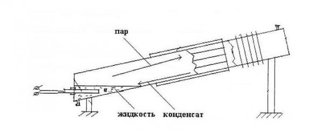 Това се дължи на факта, че в системи от този тип парата отново навлиза в котела чрез гравитация. Това означава, че тръбопроводът трябва да бъде монтиран под наклон.