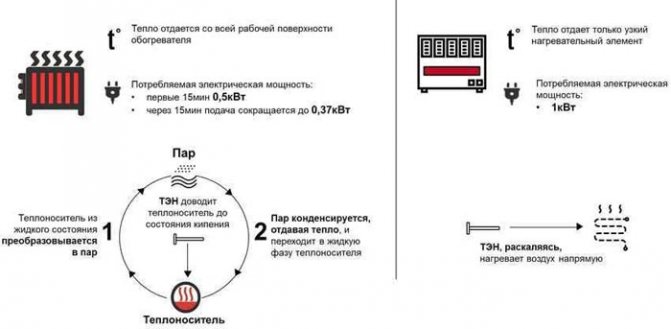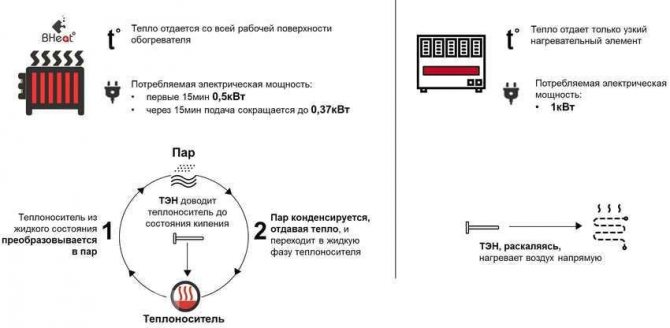 - Нагревател с капка пара не е особено икономичен. Ако вземем един и същ конвектор с електронен термостат, тогава и двете устройства ще консумират почти еднакво количество електроенергия.