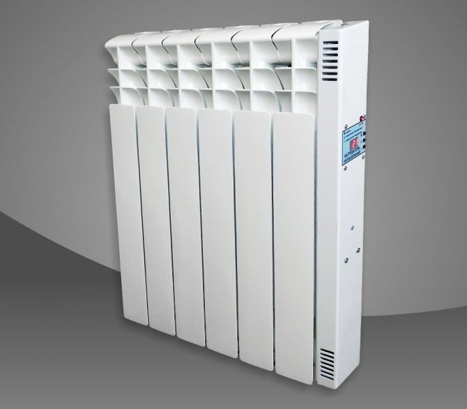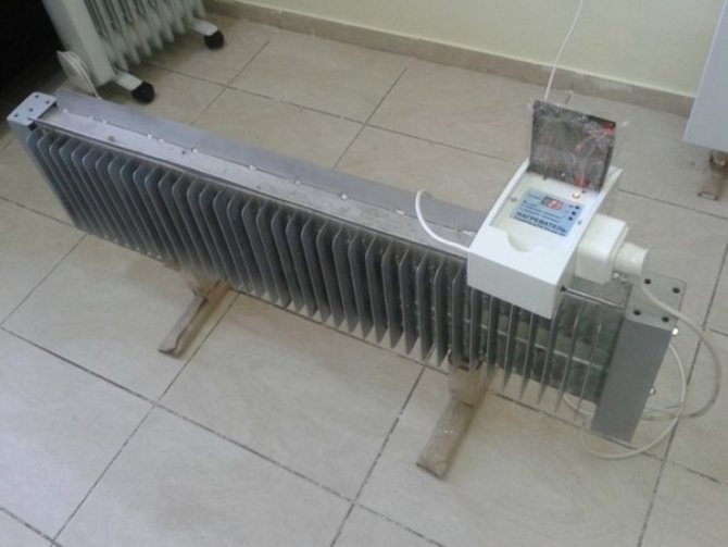 - нагревателен елемент, захранван от електричество и монтиран в долната част на отоплителното устройство.